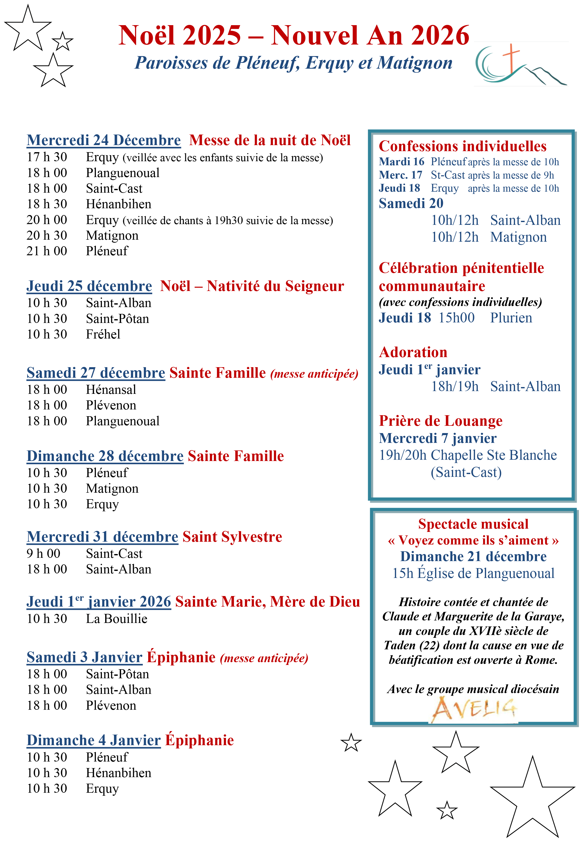 Noël 2025 – Nouvel An 2026 – Paroisses de Pléneuf, Erquy et Matignon